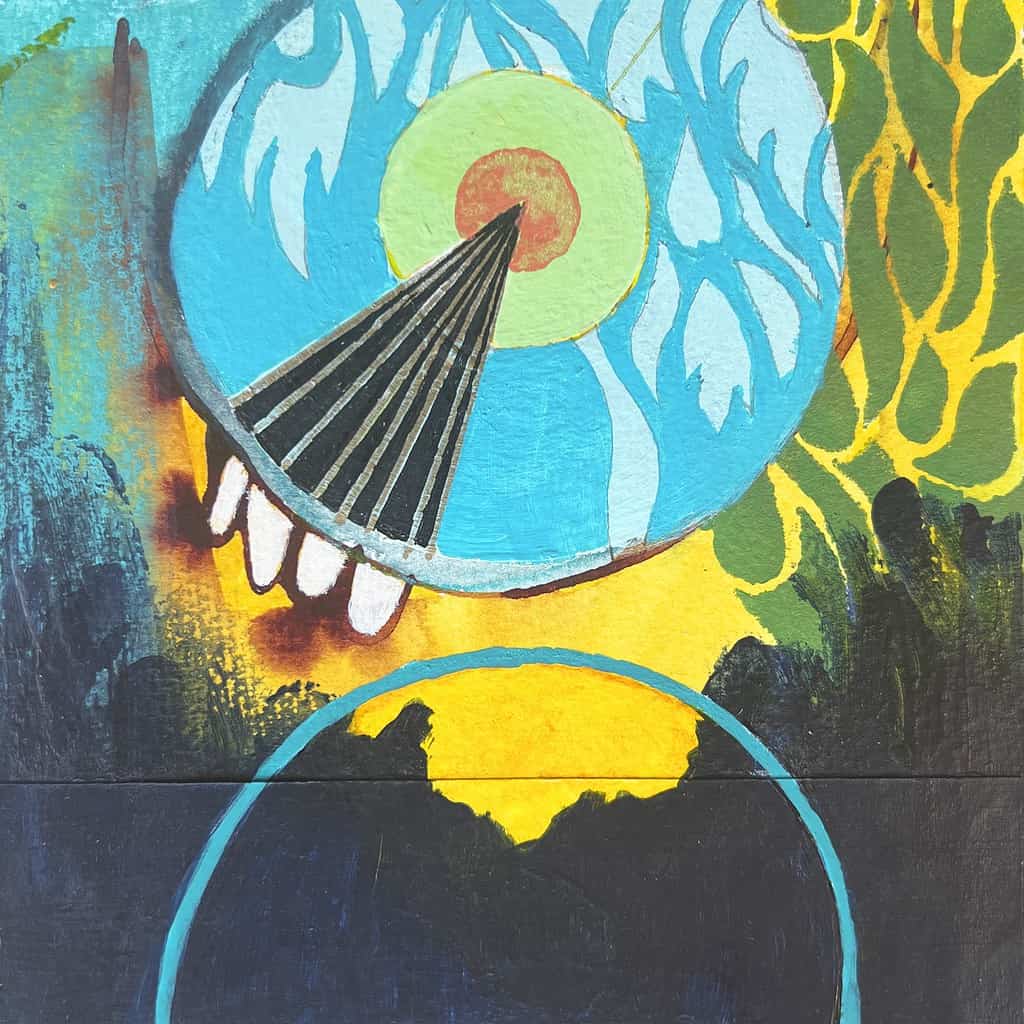 Wanting to embrace a more spontaneous and playful approach to my art process, I created a new series of mini paintings that focused on experimentation, play, and spontaneity. I worked on all twelve images simultaneously, starting each mini-painting with simple charcoal marks, allowing my hand to move freely across the canvas. Then, I added translucent washes, letting the early marks peek through and create depth. The next step was incorporating opaque acrylics and collage papers, adding vibrant pops of color and interesting textures. I know what you're thinking: this must have resulted in a chaotic mess. And you're not wrong! At this point, my paintings resembled a disorganized jumble of elements. But that's where the magic happened. I sat down with each one and let my intuition guide me. I asked myself, "What else does it need? What can I eliminate?" It was a process of refining and finding balance.