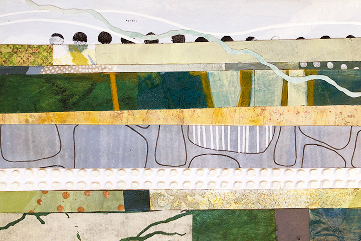 Patterns and textures are all around us. The wispy clouds in a soft blue sky and the old stone walls that snake through the countryside. This collage celebrates Ireland's caressing mists, verdant meadows, and open fields dotted with sheep.