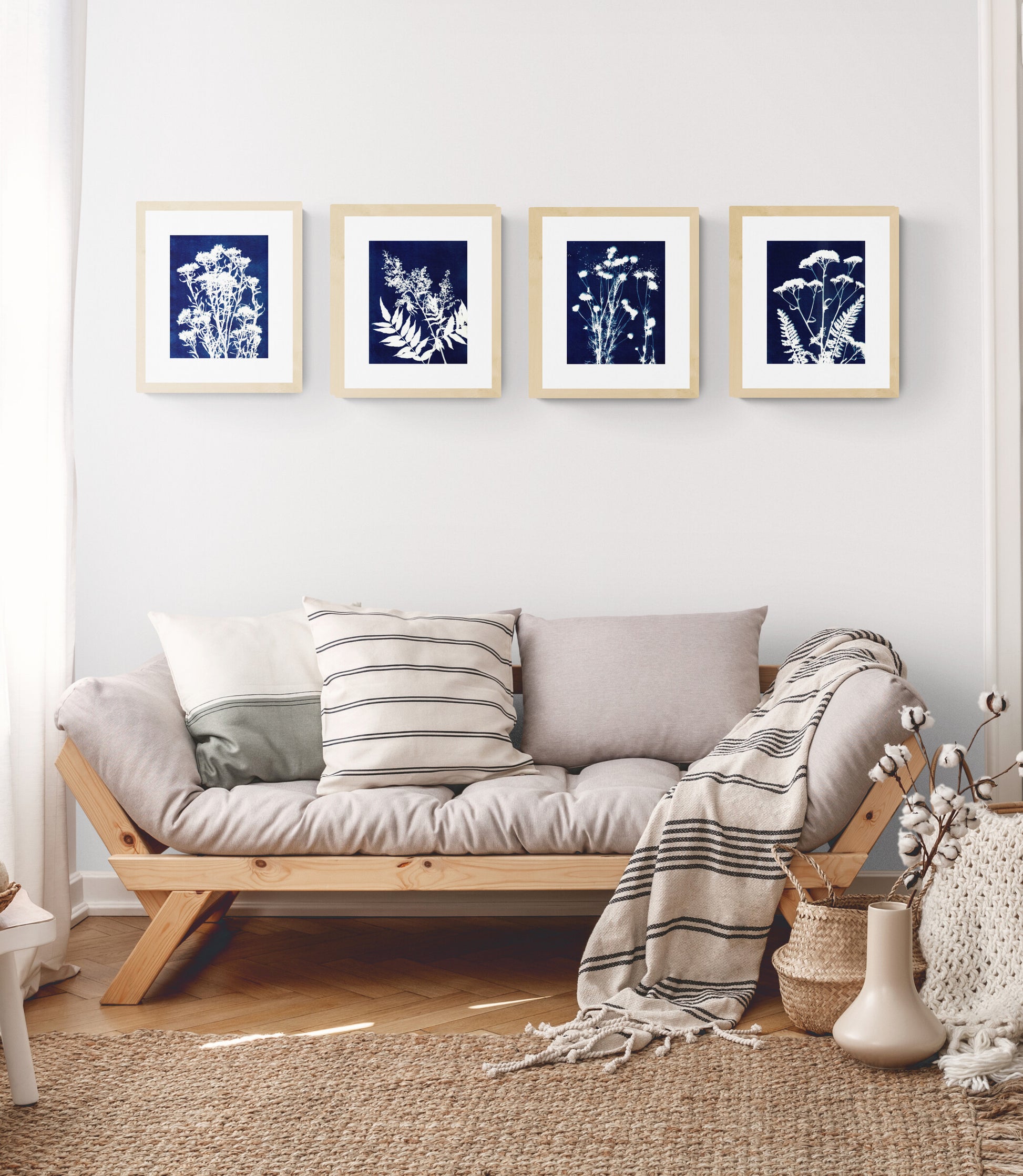 Cyanotypes are one of photography's oldest printing processes. Its print's distinctive feature is its cyan blue shade, which results from its exposure to ultraviolet light. I used plants from my garden to block the UV rays and create unique, botanical silhouettes.