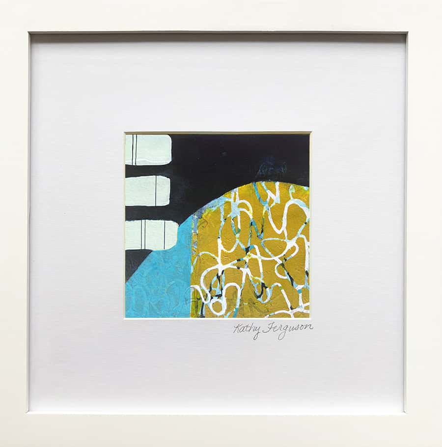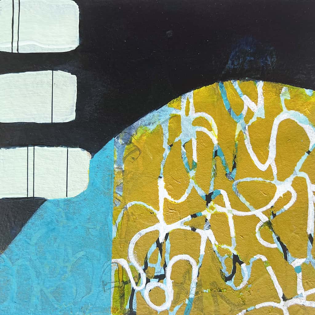 Wanting to embrace a more spontaneous and playful approach to my art process, I created a new series of mini paintings that focused on experimentation, play, and spontaneity. I worked on all twelve images simultaneously, starting each mini-painting with simple charcoal marks, allowing my hand to move freely across the canvas. Then, I added translucent washes, letting the early marks peek through and create depth. The next step was incorporating opaque acrylics and collage papers, adding vibrant pops of color and interesting textures. I know what you're thinking: this must have resulted in a chaotic mess. And you're not wrong! At this point, my paintings resembled a disorganized jumble of elements. But that's where the magic happened. I sat down with each one and let my intuition guide me. I asked myself, "What else does it need? What can I eliminate?" It was a process of refining and finding balance.