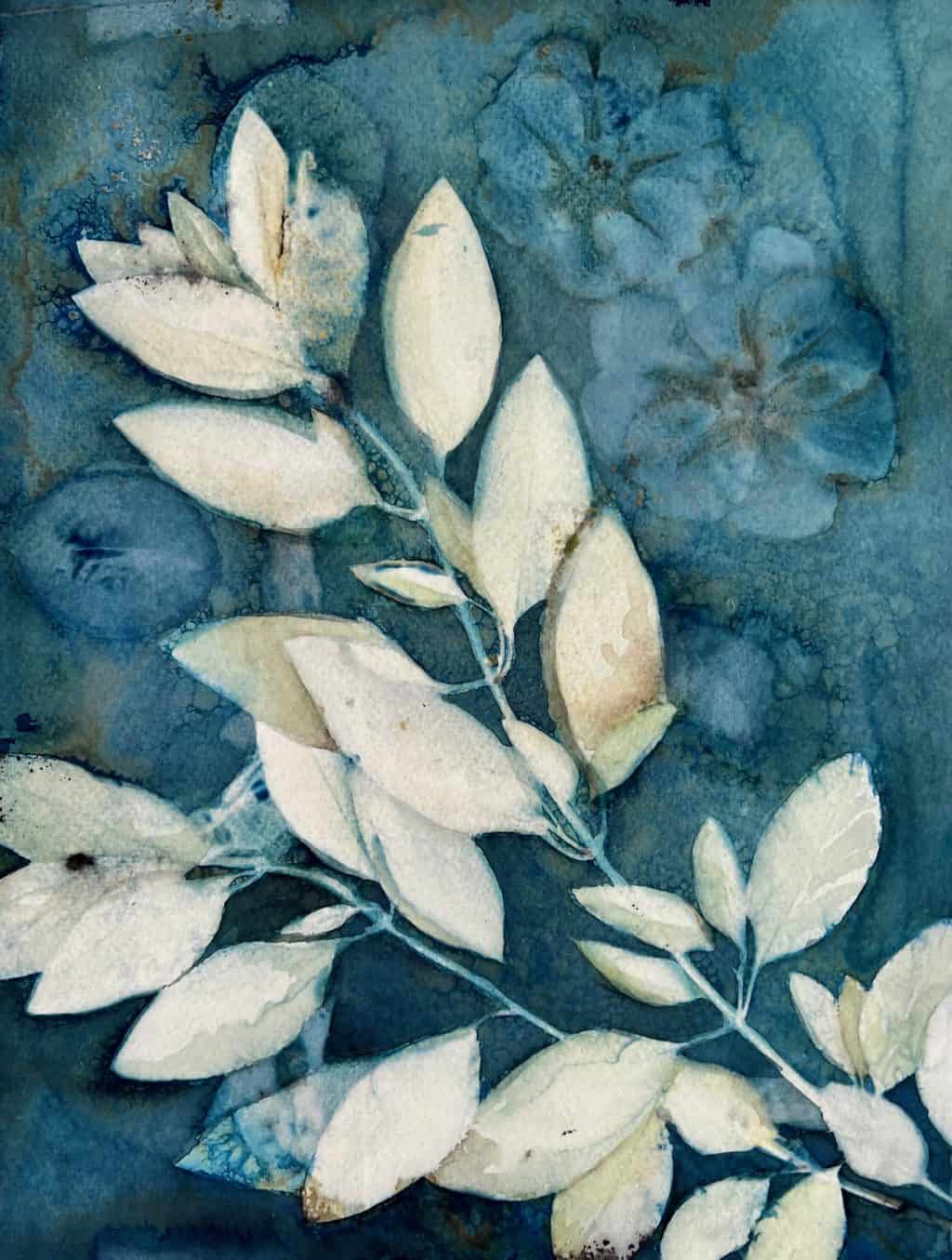 Cyanotype and Watercolor