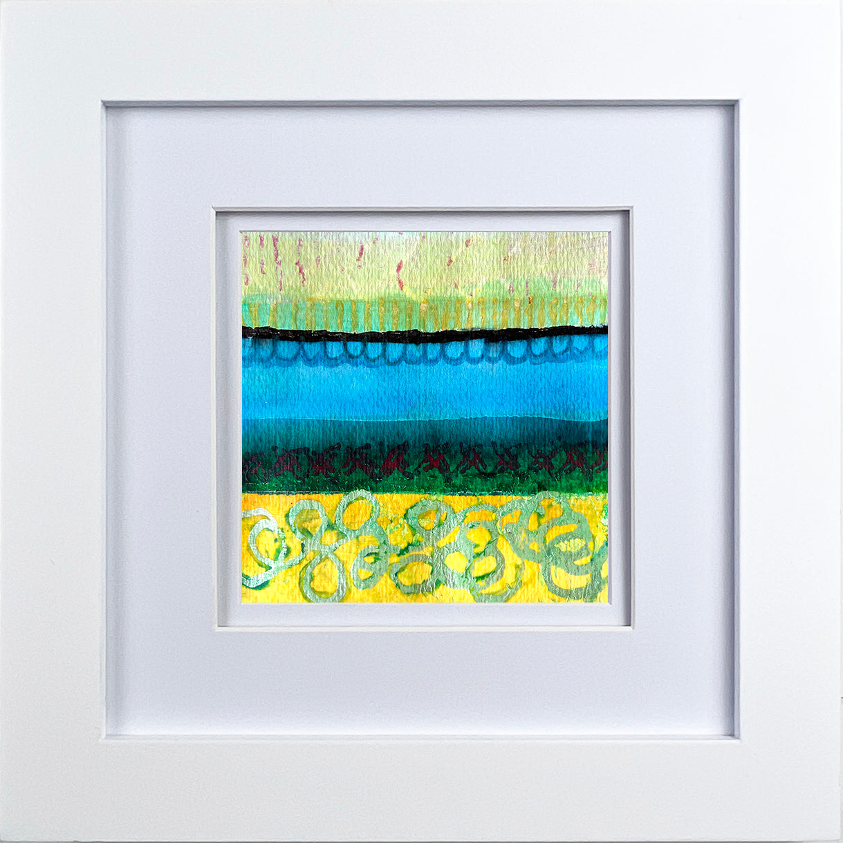 Creating this series of twelve stripe-paintings was a pure delight. Inspired by a childlike approach, each piece bursts with playful color combinations. I reveled in layering translucent hues, watching them blend and dance, whispering secrets of new shades. Simple doodles of dots, lines, and whimsy add a touch of charm to each canvas.