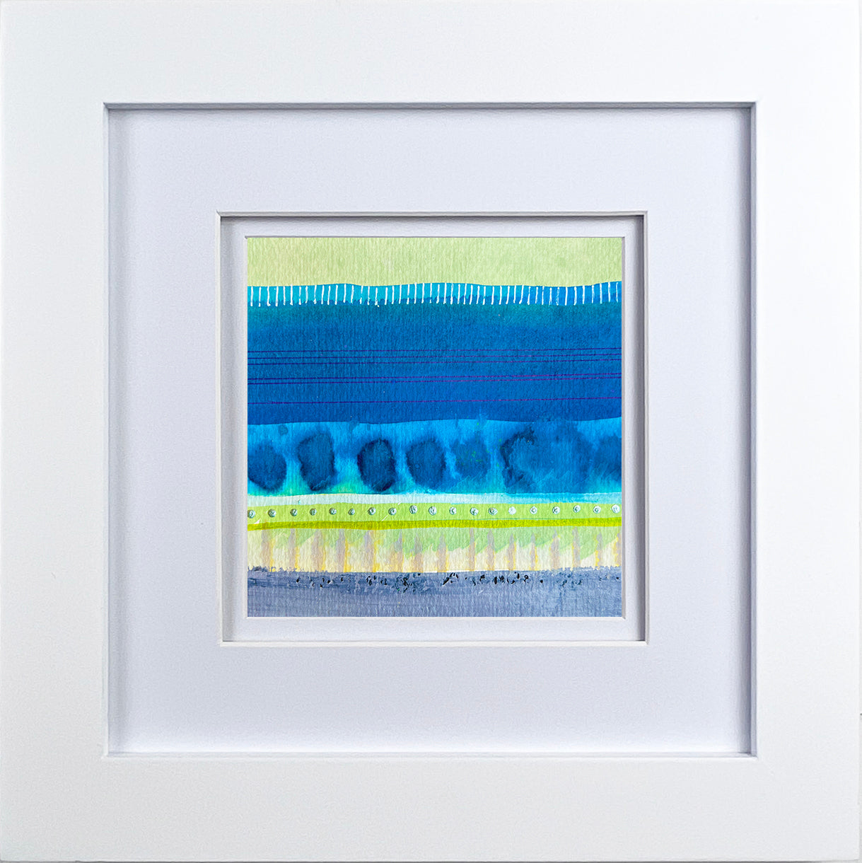 Creating this series of twelve stripe-paintings was a pure delight. Inspired by a childlike approach, each piece bursts with playful color combinations. I reveled in layering translucent hues, watching them blend and dance, whispering secrets of new shades. Simple doodles of dots, lines, and whimsy add a touch of charm to each canvas.
