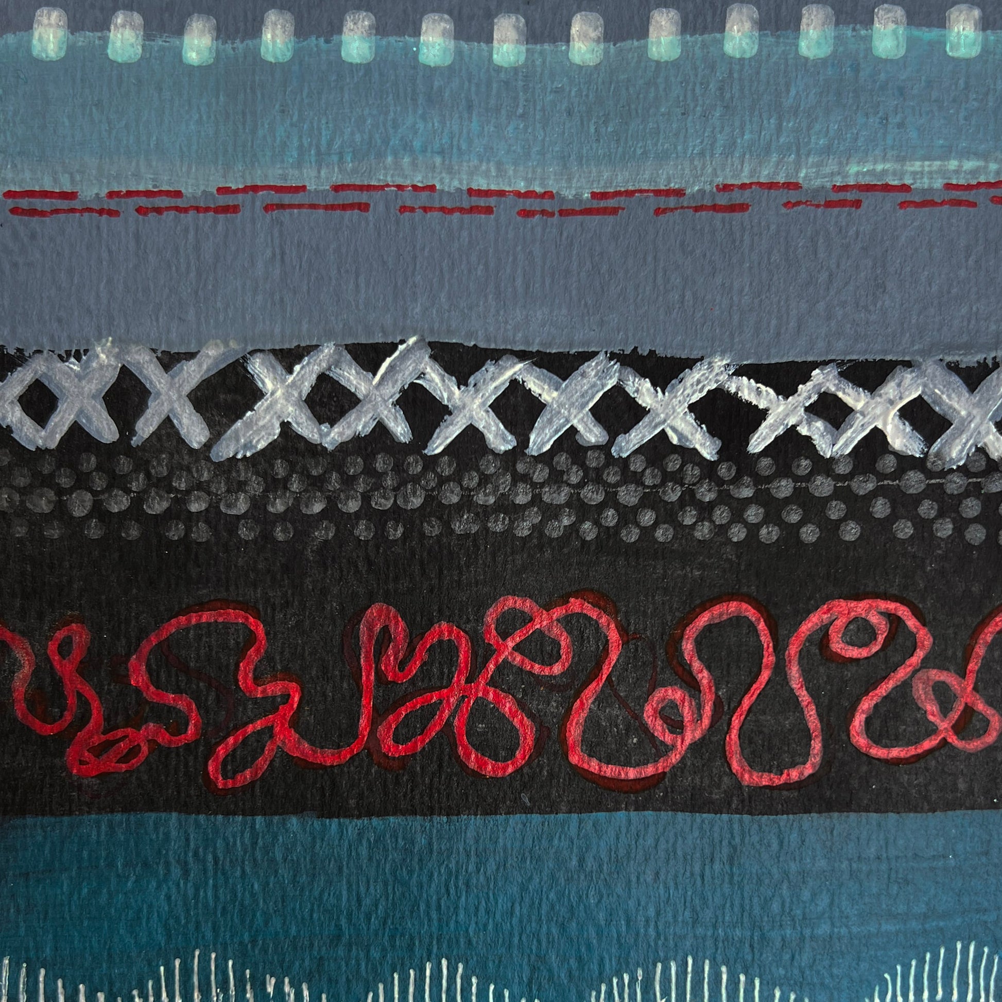 Creating this series of twelve stripe-paintings was a pure delight. Inspired by a childlike approach, each piece bursts with playful color combinations. I reveled in layering translucent hues, watching them blend and dance, whispering secrets of new shades. Simple doodles of dots, lines, and whimsy add a touch of charm to each canvas.