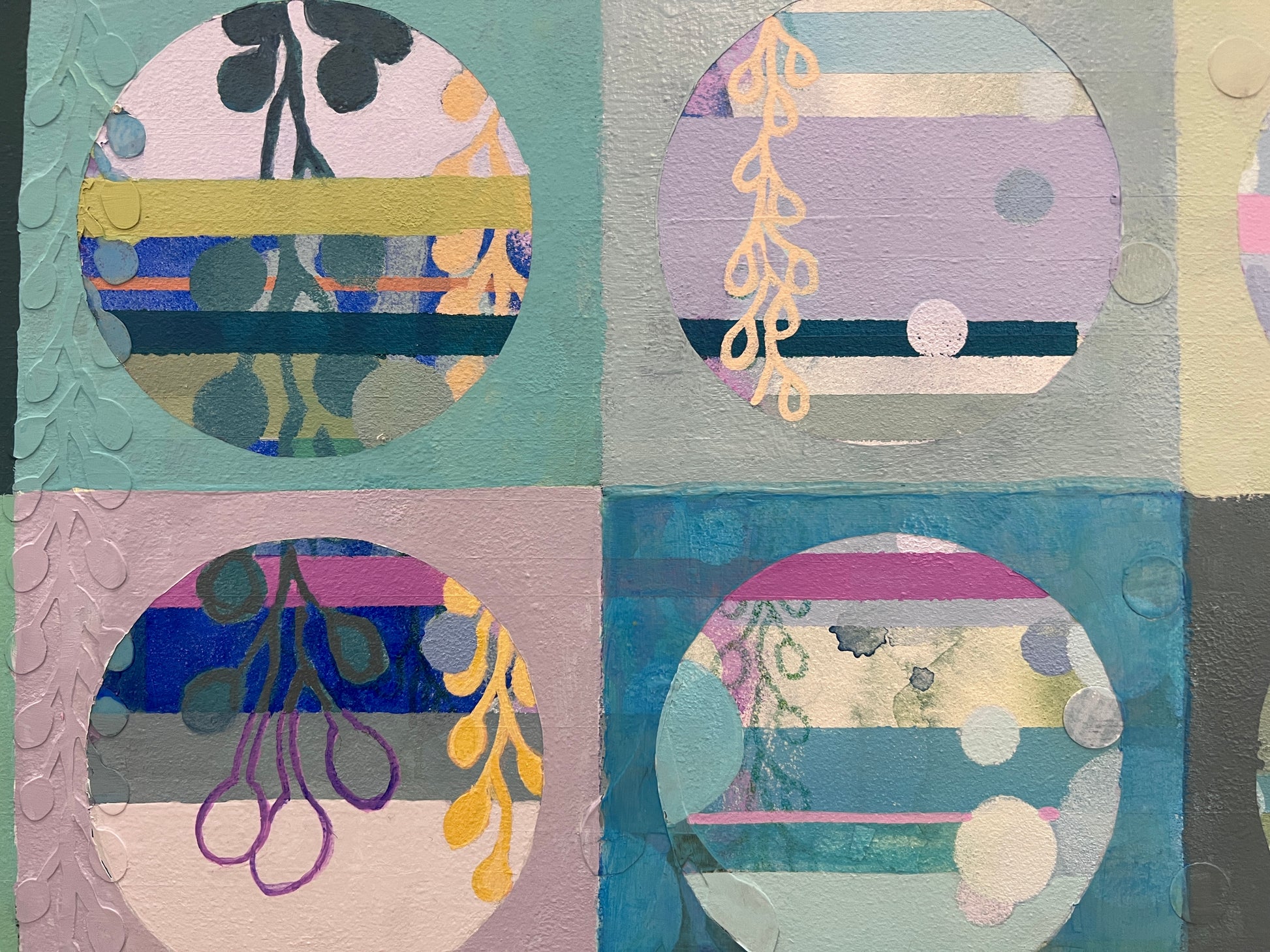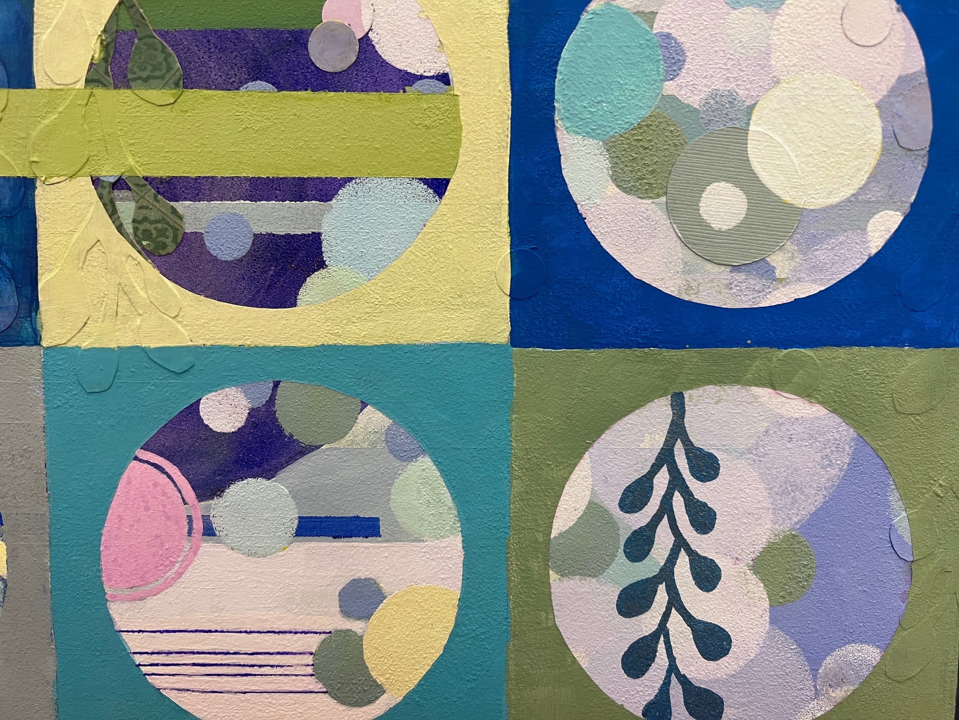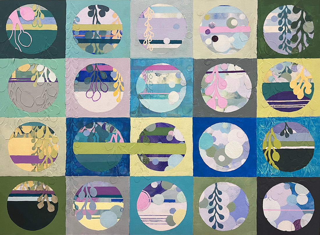 On a trip to Costa Rica, I did some nature hikes in an old-growth forest with a local guide. He was terrific at spotting animals up in the trees. We would view them through a high-power spotting scope (similar to binoculars but with only one lens). I loved viewing the world through the microcosm of a small circle. It made me focus on a tiny aspect of the greater jungle around us, ignoring everything around me. As an artist, I also like to create that focused direction in my artwork. I lead the viewer to what I want them to see through color, shape, value, and line.