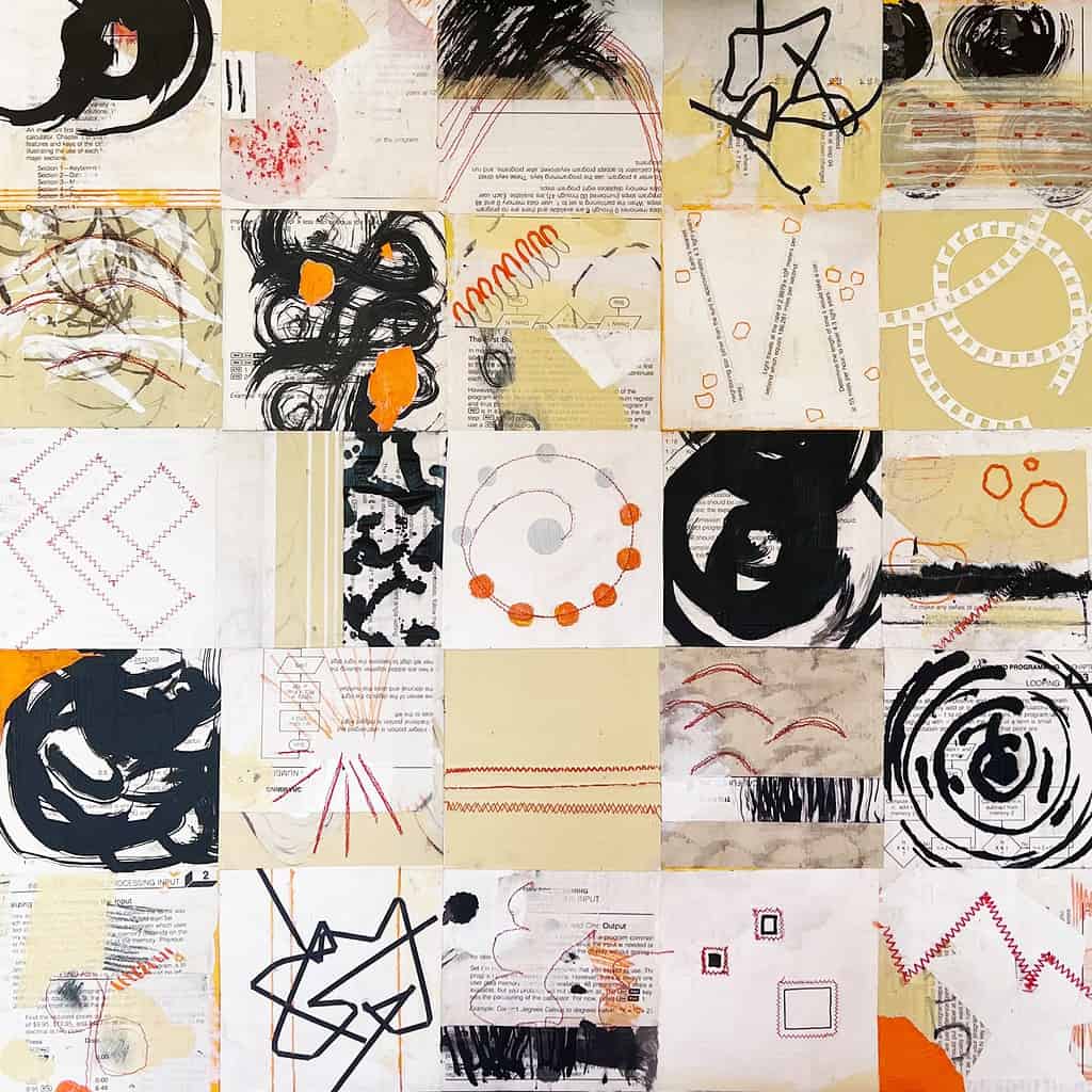 Also available is TI 57, Subtraction, the second in this two-painting set of bold, gridded artworks using India ink, acrylic paint, machine and hand sewing, and collage papers. They can be hung adjacent to create a single, larger artwork (24" x 48")